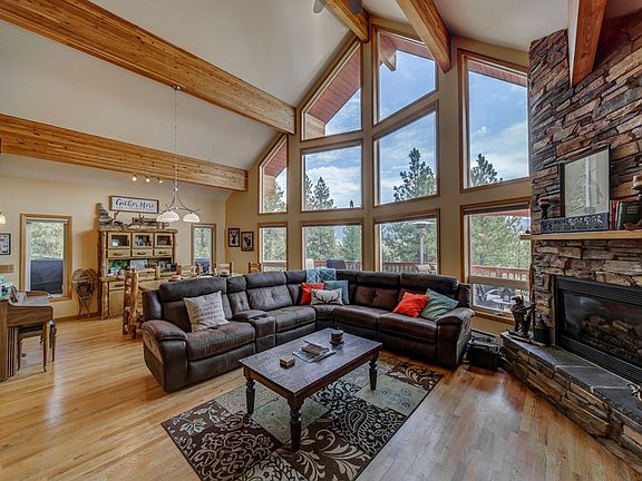 Large MeadowCreek Golf Resort custom Craftsman home with views of Meadows Valley & mountains. Quality construction throughout this 2 bdrm, 3 bath, 2,702 sqft home w/ 3-car garage on a 0.63 acre lot. Living room features two-story floor-to-ceiling windows, large glue-lam beams, solid Oak flooring & large cultured stone fireplace. Kitchen equipped w/ Hickory cabinets, stainless appliances, island, computer desk & large pantry. Upper level is the master loft, w/ room-sized walk-in closet, french doors to balcony & fireplace. Bottom floor can be used as a 2nd master bedroom w/ full bath, closet & fireplace or could be used as a second living room/media room. Includes tons of storage, R-51 insulation, large wrap around deck, large paved apron, extensive flower beds and drip system.