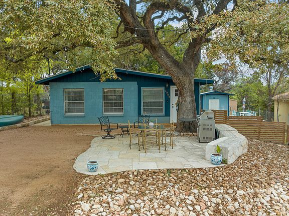 This is the Picture-Perfect Lake Travis Cottage for an amazing short-term rental, primary residence, investment property, or weekend lake getaway! Adorable home has had all new plumbing, roof, landscaping, AC/heating units, and fence! All appliances can stay, including the washer and dryer! The 2 bedroom, 1 full bath home is open and bright with beautiful and clean flooring throughout, accent wall, sliding barn door in entry, and fully functional kitchen with eat-in nook! Outside provides a lovely shaded limestone patio area in the front to relax and enjoy the Lake Travis views or plenty or room for entertaining friends! Fenced in side yard allows pets a great retreat, along with a storage shed with washer and dryer, plus additional storage area in the back! Community boat ramp and water access in the optional HOA awaits the water, fishing, and boating enthusiasts. Come see The Little Blue Cottage on Lake Travis today!