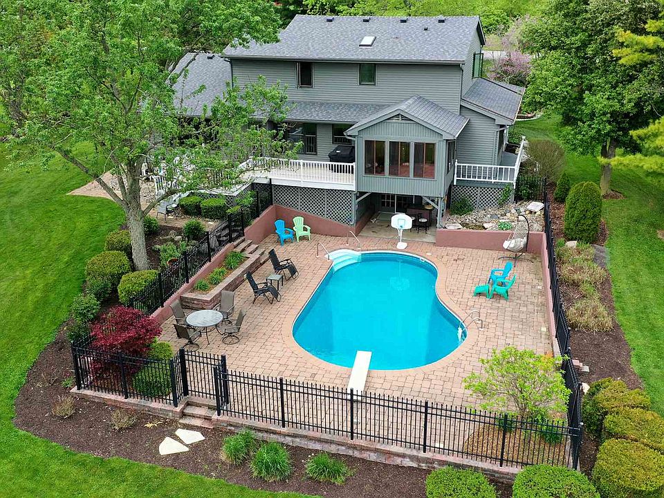This beautiful home sits on 3.5 acres and overlooks Bridgewater Golf Course and backs up to a wooded area. Improvements in the last 5 years are a new Roof, Furnace, A/C, Pool Liner, Pool Heater, Water Heater, Water Softener, Well Pump, Sump Pump, Dishwasher, Petsafe Underground Fence and a Chamberlin Garage Door Opener. The barn is big enough for all your toys and has a horse stable. The walk-out basement has a full bathroom, full kitchen and a large rec room and plenty of space for all the pool toys.
