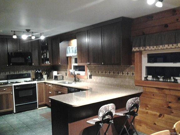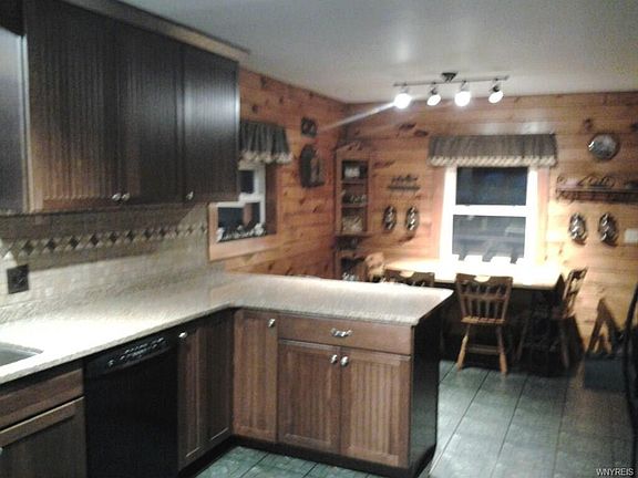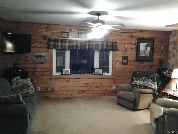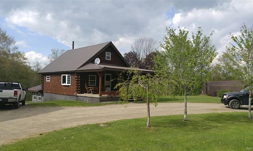 Scenic setting for this log home with country charm. Offers 8 acres, surrounded by Catt Creek and Elton Creek on property. This home is all Arcade electric with a newer wood furnace (pellet opt.) for add'l heat source. Updated kitchen (2015) with ceramic tile backsplash and quartz counter tops, soft close cabinets, includes appliances. First floor bedroom with plenty of storage. Upstairs redone (2015) with beautiful tongue & groove wood, foam insulation. Room to grow with the full, walkout, basement, 9 ft. ceilings, would make great rec room, add'l bedroom, etc.. and has access to large Jacuzzi (2012), . Barn 24x24 w/ 3 loafing stalls, water, elec., pasture. Garage/work shop is mechanics dream, 36x36 with 2 large overhead doors, insulated with woodstove. Wood shed 10x20, with next years wood supply. All structures have metal roofs. 2nd, larger Barn with 3 tie-stalls, hay loft. Woods leading to trails to ride snowmobiles and ATV, horses...100% Money back Guarantee program