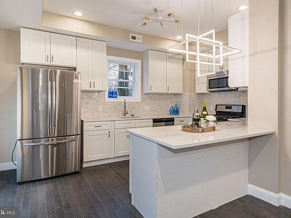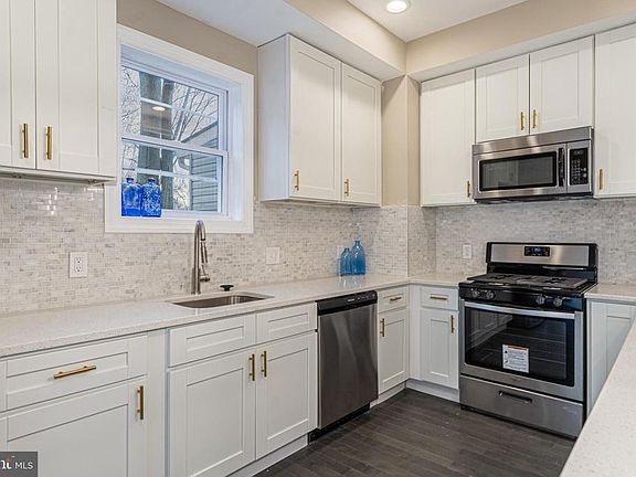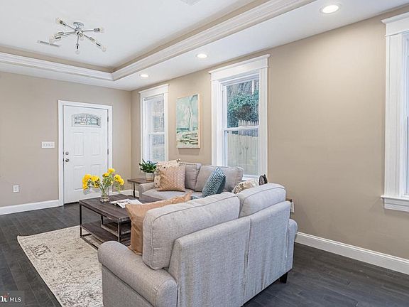BEAUTIFULLY DESIGNED RENOVATION WITH 3 FINISHED LEVELS AND OFF STREET PARKING! Open floor plan featuring hardwood floors throughout the main level, a spacious living room and dining area w/ tray ceiling, designer kitchen with ss appliances, granite counters, and tile backsplash, main level half bath, upper level Primary bedroom suite with full bath and 2 additional bedrooms with a hall bath, fully finished basement w/ a family room, 4th bedroom, and 3rd full bath, and driveway parking. Pack your bags and move right in!