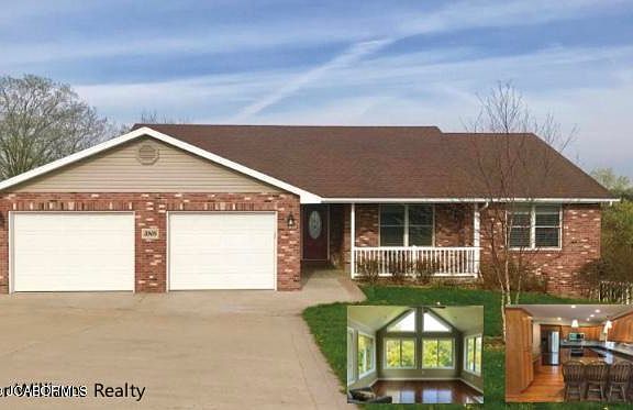 Amazing amount of house with separate living space on both levels for 2 families, even laundry rooms on both levels! Downstairs has separate parking/entrance. Fresh updates with new paint & flooring makes this a truly move in ready home. Large open rooms & sunroom off kitchen on main level with a view! Gas FP in living room. Wood floors dominate the main level. Large BR, Office, huge open room with offset kitchen complete w/ stove & dishwasher, laundry plus large storage room. Patio below deck & another on side in fenced area. So much house on an acre just outside city limits! Choice of Ameren or 3 Rivers Elec. Prism tv with centurylink available!