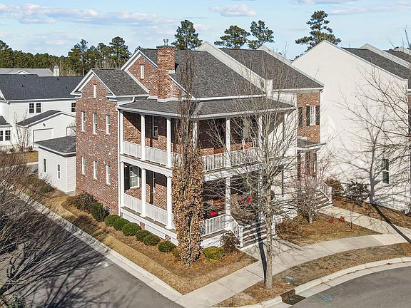 Southern Architectural details can be found in this Luxury Townhome in Carolina Colours! Immediately you will notice that this townhouse features the only double level wrap around veranda with incredible views of the Carolina Colours fountain. As you enter through the 8' solid wood front door into this pristine home, you step into an inviting family room with beautiful hardwood floors, 10' ceilings, and living room views of the fountain and gazebo common's area. The kitchen has granite countertops with stainless steel appliances and plenty of cabinets and counter top space. The spacious master suite has an awesome walk in shower, walk in closet and its own wrap around balcony for you to enjoy! There is a private driveway and garage located behind the home, just steps away from the back porch. Part of the charm of this townhouse is that it's part of the Carolina Common's neighborhood. It is just a short walk to the gazebo overlooking Carolina Lake where you can enjoy some amazing sunsets! Be sure to check out the pool, tennis courts, pickle-ball courts, spectacular pavilion, and workout facility; all of these amenities are included in your HOA. Outside lawn care is included with your Townhome HOA. This unique, outstanding home won't last long, so call me today for more details!