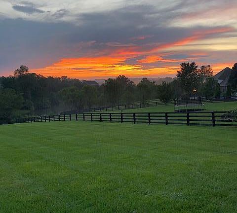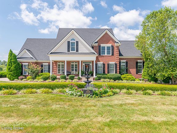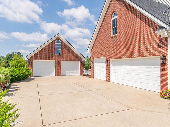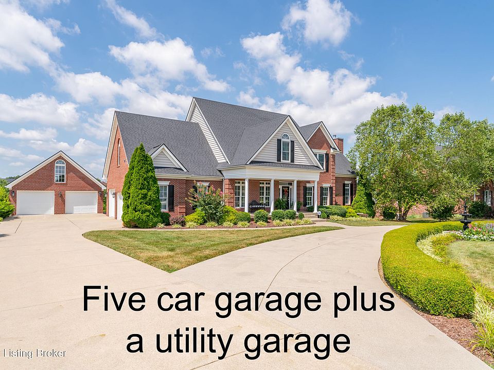 This stunning move in ready home in Oldham County has everything you are looking for including panoramic views of the rolling hillside, neighbors pond and gorgeous sunrises and sunsets. You won't believe the views of Mother Nature's magic. There's a circular driveway and an inviting covered front porch. Inside you'll find volume ceilings & gleaming hardwood flooring. Just off of the foyer is a formal dining room with wainscoting and a formal living room that makes a great home office. The great room has a gas fireplace to take the chill off on those upcoming crisp fall evenings. There's also built in bookcases for your collectibles and access to the rear covered deck. The adjoining eat in kitchen has a 9' door to bring in plenty of natural light. There's also maple cabinetry, granite countertops, a 5 burner gas cooktop, Advantium & convection ovens, and a center island workspace. The laundry is conveniently located off the kitchen by the access to the 3 car attached garage. Upstairs you'll find the luxurious primary bedroom with vaulted ceilings and a spa like bathroom with walk in shower, whirlpool tub and 2 walk in closets. There are three additional bedrooms on the second level, one with a private bath. The walk out lower level has a kitchenette with refrigerator. There are 9' ceilings in this area, so it feels just as luxurious as the main levels of the home. This area also features a family room with gas fireplace, game area, full bath and a large walk in closet. The walk out opens to an expansive patio area. Do you enjoy the outdoors? You'll love this yard with raised beds, grapes, pear and peach trees. The lot has a four board fence. Several of the windows and exterior doors have been replaced in 2017. Attention crafters, mechanics, woodworkers or people that love to tinker--Did I mention in addition to the three car attached garage, this home has a 2.5 car detached garage with a lower level garage and upstairs loft for storage or future finish? The detached garage has one door that is 8' tall--perfect for boat or oversize trucks. The lower level garage is perfect for lawn equipment, ATV or grown up toys. You don't want to delay visiting this phenomenal home. Seller is offering a one year America's Preferred Home Warranty at a cost of $500.