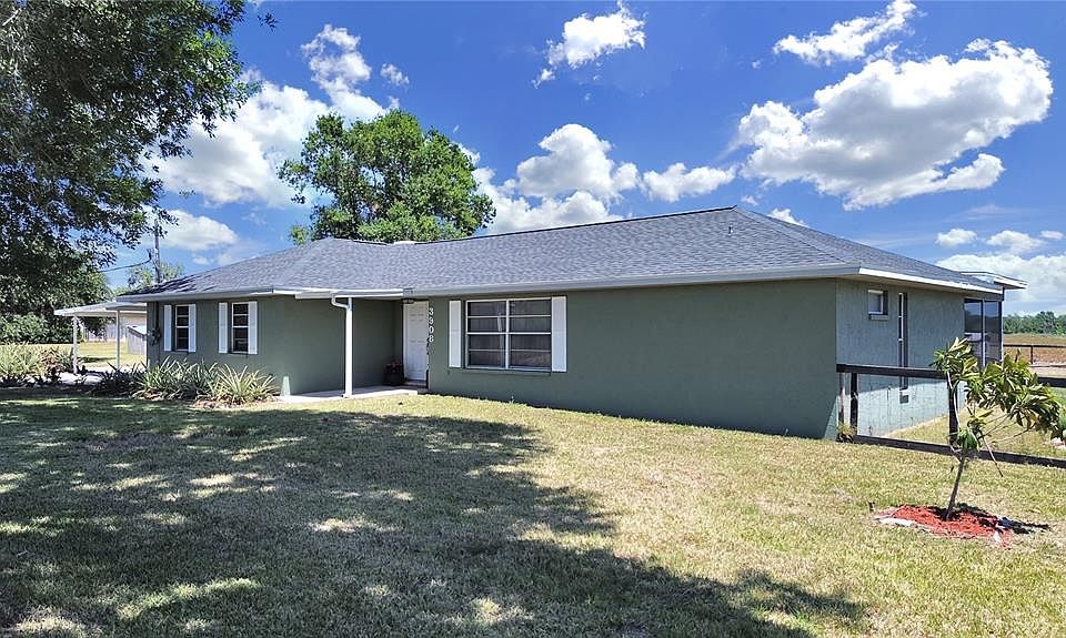 Welcome to country living at its best. This charming 3-bedroom, 2.5-bath home is situated on 0.63 acres and is surrounded by peaceful strawberry fields with no front or rear neighbors, offering a true sense of privacy. The home features a split-bedroom layout with vaulted ceilings and a cozy wood-burning fireplace in the living room. The spacious kitchen is equipped with appliances and a large pantry, ideal for those who enjoy cooking and entertaining. Each bedroom includes a walk-in closet, and the master suite offers both a walk-in shower and a separate soaking tub. Additional features include a new roof installed in 2024 and AC units from 2017. The property is serviced by a well and septic system and includes a water softener system. Enjoy outdoor living in the expansive 640-square-foot screened lanai, perfect for relaxing or hosting guests. A two-car attached garage is complemented by a two-car carport and a separate RV garage on a slab. The home also includes an enclosed laundry room with washer and dryer hookups, ceiling fans throughout, double front doors, sliding doors leading to the lanai, and luxury vinyl plank flooring throughout the home. The second bath is conveniently located and could function as a future pool bath. This property offers a rare combination of country charm, modern updates, and functional space inside and out.