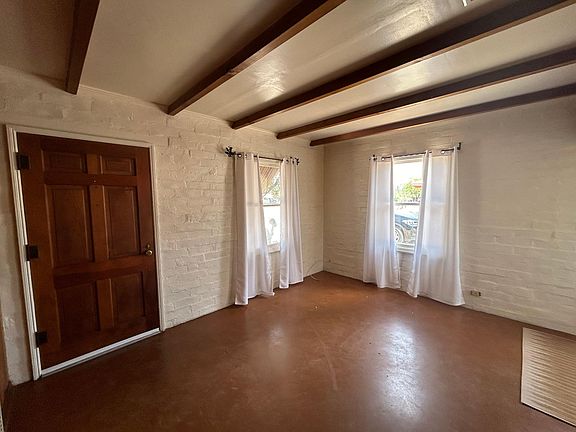 Charming 2 bedroom/1bath adobe cottage with a small bonus room that can be used as storage space or office. Original knotty pine walls and ceiling beams in living room and kitchen. Large fenced lot, central A/C, newly updated bathroom & kitchen, new washing machine, colored concrete floors for easy cleaning. Main bedroom has carpet, 2 closets and built in drawers. Close to bike paths and bus service, with all amenities nearby. New car ramada will be in place early August. Lease is for one year. Renter is responsible for all utilities (gas, electric, water and waste management etc). Renter must water trees and oleanders. If water bill exceeds $150, owner will pay the difference. Renter will keep the yard neat and free of weeds. Tools to do so are provided by the owner. Last month's rent is due at signing. No smoking allowed. Small pets are allowed with a $150 non refundable fee. Application and lease will be provided in person for review and signature.