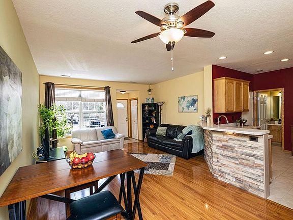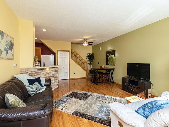 Step from the lovely patio, perfect for grilling or enjoying your morning coffee, right into a wide open living space complete with a dining area and a large, updated kitchen. The stonework on the back of the breakfast bar is sure to catch your eye! Great open floor plan, luxury laminate flooring throughout the LR, tile in the kitchen, & plush carpet upstairs awaits. The huge main bath features a jacuzzi tub, huge vanity & shower. Also there's second floor laundry! The neighborhood is nestled among trees and landscaping, yet conveniently located near I35, Otter Creek and Briarwood golf courses, walking/bike paths, restaurants, shopping, and more. Notice the visitor parking and path right outside the front door! Affordability, convenience, upgrades - all found right here in Ankeny. Schedule a showing soon - this one won't last long!!