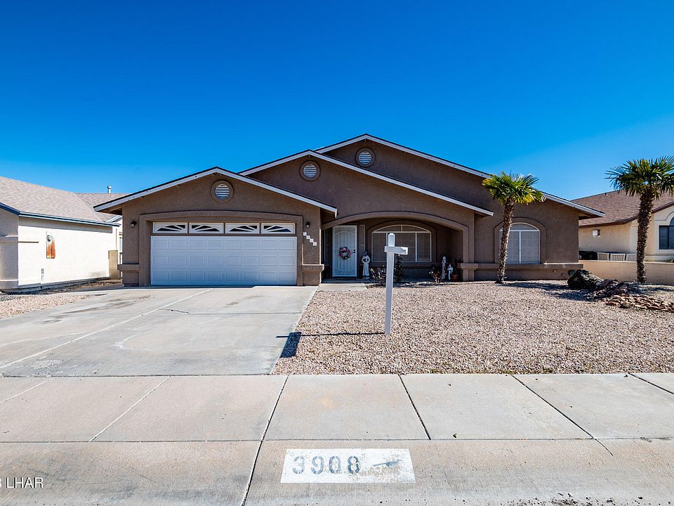 Welcome home to this absolutely turn-key custom built single story home centrally located in Kingman close to shopping, dining and lots of amenities. This lovely home offers 3-Bedrooms, 2-Bathrooms, 1,814 square feet of spacious living space, a front living room with a raised hearth fireplace and a wonderful built-in pellet fireplace, vaulted ceilings and a separate family room. The convenient kitchen features solid surface counter tops, top of the line stainless steel appliances, plenty of cabinet space, walk-in pantry and a dining area. This is a desirable split floorplan with two bedrooms and 1 bathroom on one side and the primary master bedroom and bathroom on the opposite side. The master bedroom has multiple closets and a spa tub in the master bathroom. And do not miss the wonderful Arizona room in the rear of the property. Easy maintenance landscaping in the front and backyard. New roof, new water heater, fresh interior paint, ceiling fans, ceramic tile flooring, recessed lighting, bullnose corners, tons of storage and so much more! Kingman is conveniently located about 30 minutes from Laughlin and 90 minutes from Las Vegas. You will not want to miss this fantastic home!
