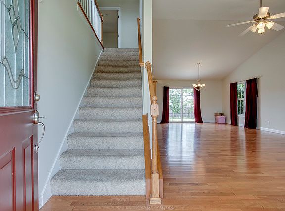 Everything you are looking for with an attractive price! This home provides almost 2600sqft of space plus a basement with finished space. The main living area features a great room with an open kitchen and dining area. 1st floor master bedroom has access to the back patio, a private bath with double vanity and separate shower and tub. 3 additional bedroom upstairs, one of which could be used as a large bonus room. The basement features 9' ceilings and a finished family room/movie room. This is the largest lot in Boulder ridge with great landscaping, a large patio and is fenced. Extras: kitchen range vents to exterior, CVac with kickplate in K, grape vines and small garden in backyard.