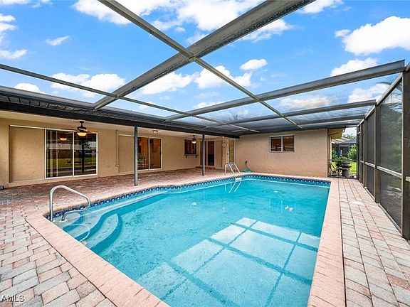 BACK ON THE MARKET THROUGH NO FAULT OF THE SELLERS OR THE PROPERTY....MOTIVATED SELLERS! No flooding from storms...This Diamond in the rough is Located in a prime SE Cape neighborhood and is situated on an oversized lot. Inside, the generous layout features a spacious living room and a separate family room with soaring ceilings. Offering nearly 2,000 square feet of living space and featuring timeless TRAVERTINE flooring throughout the living area with carpet in the Master Bedroom and guest room. The kitchen offers abundant storage, granite counters and real wood cabinetry. The bedrooms are all generous in size and each offers walk in closets. The outdoor area is a true highlight, with a beautiful pool surrounded by paver decking and a huge under-truss lanai, with plenty of room for an outdoor kitchen & perfect for watching Southwest Florida’s stunning sunsets while relaxing by the pool. The sliding glass doors pocket from all areas that lead to the beautiful pool area, allowing the outdoors-in. Whether you're hosting gatherings or enjoying peaceful evenings at home, this property encapsulates the best of Florida living in both style and location. Roof 2017, A/C 2015, Re Plumbed in 2005. New Hurricane rated Garage Door in 2014, storm shutters for all openings. Located in a fantastic SE Cape location with an amazing variety of dining, shopping and entertainment and and offers convenient access to both the Midpoint and South Bridge, making it easy to reach Fort Myers. You’ll also be within walking distance of a soon-to-break ground 175-acre park and recreational center, perfect for outdoor enthusiasts.