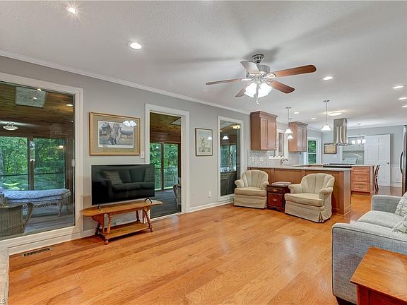 Beautiful ranch home with tons of space in The Cardinal neighborhood in northwest Greensboro. One-level living with amazing upgrades & a spacious lower level with great potential for guest quarters or additional space for everyday living. Located on a pretty cul de sac, with mature landscaping. Living room & dining room have great natural light. Kitchen has attractive marble countertops, stainless steel appliances, breakfast area with a bay window & opens into a cozy den with stone facade fireplace flanked by built-ins. The sunroom has a vaulted ceiling, exposed wood & brick, & walls of glass overlooking the scenic backyard. The large primary on the main level has an en-suite bath with double sinks & a tiled shower. Two additional bedrooms, an updated hall bath, & a separate laundry room complete the main level. Outdoor space includes an inviting covered front porch & a rear deck. Nice 2-car garage with zero step entry provides great additional storage. Convenient to everything!