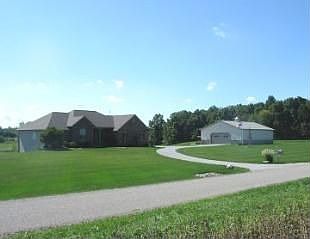 THIS PROPERTY IS STUNNING not only in appearance but in size, quality of workmanship, floor plan, the setting & even the out-bldg. Attention to detail is very apparent. Built by Paul Yoder Construction w/6” sidewalls, nearly finished full walkout basement w/all concrete safe room, brick, cedar & vinyl exterior, Pella Pro-Line windows, hi-eff gas F/A, central A/C, Closet Tamers, 10’ ceilings, 6 panel doors, security system, new 12’x30’ Trex & cedar decking and much more. The 36x45 Morton bldg. offers full concrete, electrical & water, 10’ at eaves, 8’x18’ overhead doors in garage & barn, and an 18’x24’ kennel w/7’ wrought aluminum fence. With 8.396 acres of land there’s plenty of room for RVs, gardening, animals, hunting, etc., etc.