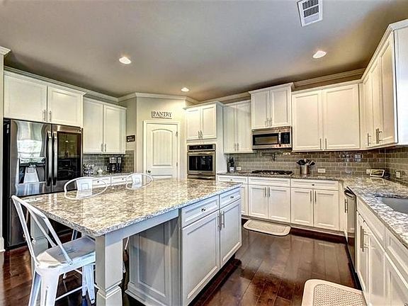 - Kitchen Features: Breakfast Bar, Eat-in Kitchen, Pantry, View to Family Room, Stone Counters, Kitchen Island, Breakfast Room, Cabinets White