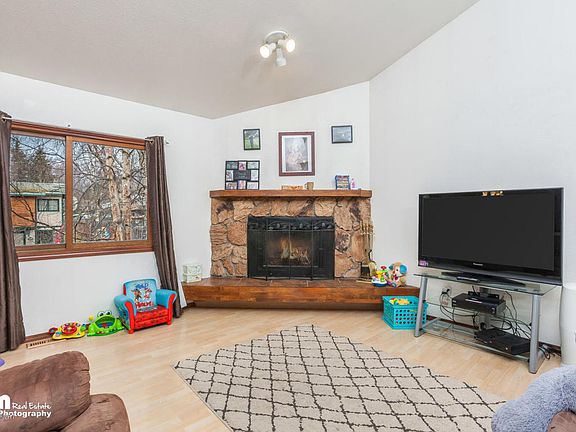 Spacious living with NO DUES,located on a culdesac, within walking distance to Chugach Foothills Park & trails. 3 bedroom, 3 baths, 1 car garage with an ample, fenced backyard. Master bedroom with full bath. New roof in 2010, laminate flooring, new laminate in the family room. SS refrigerator and gas stove.