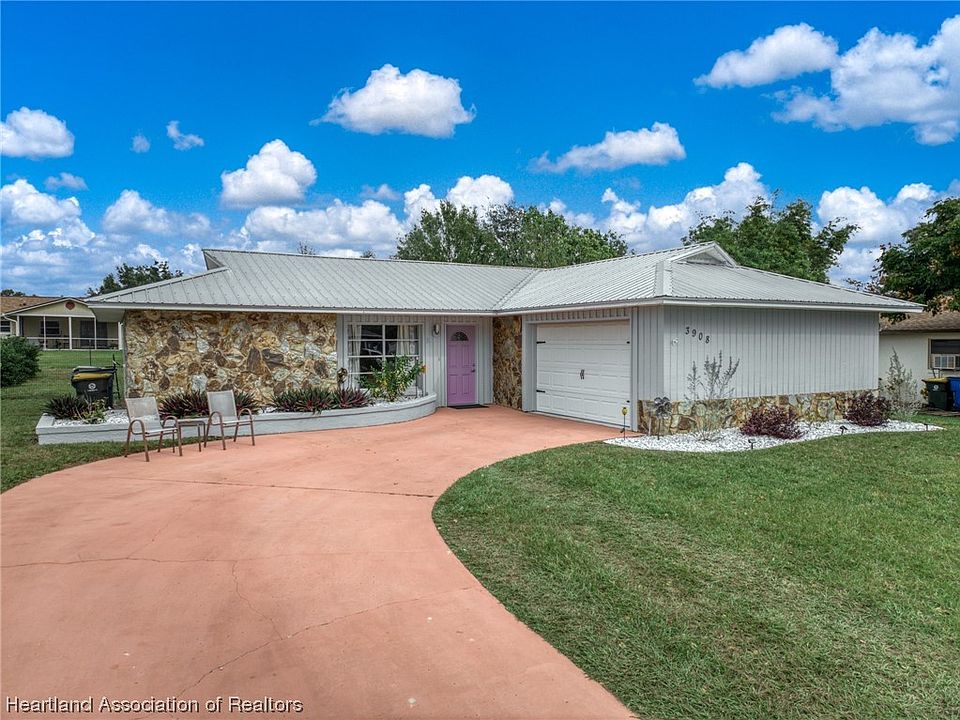 Located in the popular neighborhood of Sun N Lake Estates in Sebring, FL - this solid concrete block & stucco construction home is ready for new owners to enjoy everything it has to offer! Over 1100 sq ft of living square footage, 2 bedrooms on a split floor plan, 2 updated bathrooms, oversized 1 car garage with built-in storage cabinetry, PLUS above ground hot tub in the screened-in back porch! You will adore the attractive landscaping near the front entryway of the home and in the front yard! Walking in, you will feel right at home as you enter into the fully tiled front living room. The centrally located kitchen offers plenty of counter space, all kitchen appliances included with the sale of the property, resurfaced cabinetry, and a spacious 3'x3' in-kitchen pantry! The master bedroom contains a spacious 6'x6' custom walk-in closet complete with custom shelving! The ensuite master bath boasts an updated sink vanity, custom lighting fixtures, and a fully tiled walk-in shower. The 2nd bedroom and 2nd fully updated bathroom with attractively mosaic tiled shower/tub combo are on the opposite side of the house allowing for extra privacy for your visiting guests. The perfect area for entertaining is present in the 12'x20' screened-in back porch with new hot tub included with the sale of the property! Aluminum storage shed in the back yard is also included with the sale of the property. Air Conditioning Unit updated 2005, Water Heater updated in 2014, Full metal roof with county permit installed in 2018. Truly your own slice of Florida paradise in one of the best neighborhoods that Sebring, FL offers - Sun N Lake of Sebring features 2 beautifully maintained championship Golf Courses, tennis courts, the always wonderful Island View restaurant, a community pool area, plus plenty of events for everyone to participate in throughout the year!