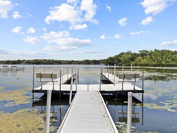 RARE CHAIN O'LAKES SETTING Stunning Waterfront Retreat on 2.55 ACRES with 177' of PETITE LAKE FRONTAGE! Welcome to your dream lakefront lifestyle! This incredible property offers ~177 feet of shoreline on Petite Lake-part of the sought-after Chain O'Lakes-with gorgeous panoramic views and a gently sloping yard that leads to your private dock. Nestled on a quiet dead-end street, you'll enjoy the peace and privacy of lake living while staying high and dry-out of the flood zone. Inside, this spacious ranch home features one level living with a full finished walk-out basement for added space (new carpet in the basement), 2 full kitchens (one on each level), and 2 cozy fireplaces (one on each level)-ideal for multigenerational living or entertaining guests. Both levels have a wall of sliding glass doors and windows to maximize water views and indoor / outdoor access. The main level primary suite has views of the water and a full en suite bathroom. There is also an optional main-floor laundry (and additional laundry in the basement). Hardwood floors throughout the main level. The attached 2-car garage is complemented by a massive detached garage with extra-tall doors and deep bays-perfect for storing boats, trailers, and lake toys. Garage capacity for ~ 8 vehicles, and the seller has stored a 40-foot boat with ease! A bubbler system lets you keep your dock in year-round, and both dock and power boat lift are included. Enjoy wide open green space for outdoor fun, relax by the water, or take your boat out for a day of adventure. Tree lined lot (along side and back of the lot) provides a feeling of tranquility and a personal, private space. This is one of the rare waterfront properties offering space, privacy, and functionality-all without compromising lake access or views. Plenty of guest parking when you want to host family and friends at the lake.
