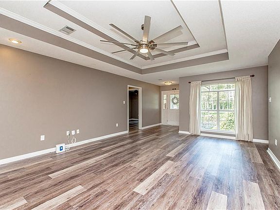 Come see this beautiful well maintained home! Featuring 3 bedrooms and 2 baths. Spacious living area with cozy fireplace, and beautiful tray ceiling. Open and quaint kitchen with granite counters, all SS appliances, and walk in pantry. Cozy primary bedroom that boasts comfort and grand tray ceilings, and en suite primary bathroom with a double vanity, large soaking tub, and walk in shower. This home offers plenty of room inside and outside for all entertaining needs! Large screened in back patio that leads to grand deck with string lights, and grilling station! Partially fenced in yard. 2 car garage, and 2 car carport. And a bonus shed! New flooring! New roof! Flood Zone X! You don't want to miss out on this home! Book your showing today!