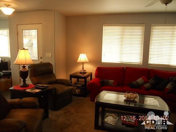 Price Reduced!!! On 05/06/2015 Sold for $153,000 Remodeled, Open Floor Plan. This cozy and comfortable home has a nice open floor plan. 2 bedrooms, 2 baths w/an office space, a nice size kitchen with an eating counter. Beautiful recessed lighting in the kitchen. Kitchen/bathrooms has be upgraded.(Remodeled in 2010) There are several fruit trees outside around the side. Great location across from the Clubhouse. A great Senior Community with lots of activities, Library, cards, golf, restaurant and more, approx. 1970 homes are in Palm Desert Greens CC Mobile home is sold Fully Furnished, Mobile home Sold As-Is