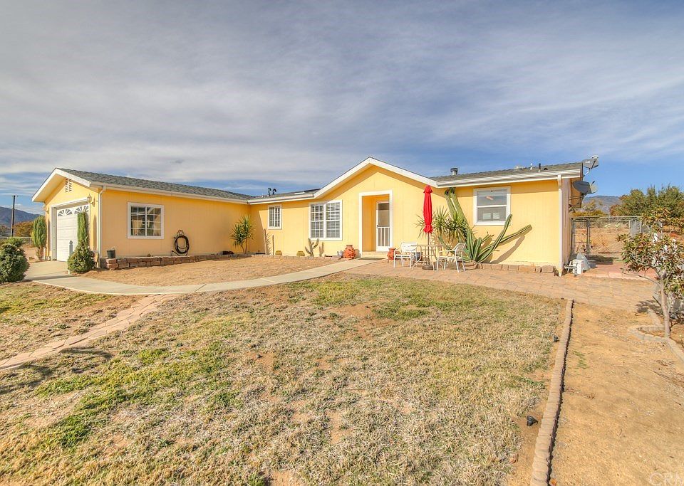 Gorgeous Anza home virtually turnkey and ready for a new homeowner. This home is 1980 square feet with 3 bedrooms and 2 bathrooms. Open floor-plan spacious kitchen, living and dining areas. Throughout the home there is custom paint, upgraded light fixtures and ceiling fans, wood blinds on the double pane windows, central air and heat. There is an attached 2 car garage. The lot is 2.26 acres of mostly all usable and cleared land with many young irrigated trees. There are two storage sheds, garden area and a covered gazebo area. The entire lot is fully fenced and has two entrance gates. The property has a private well.