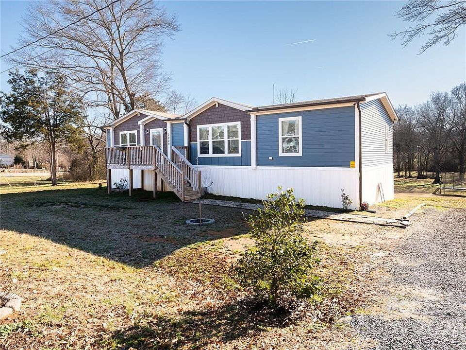Split floor plan with 3 beds/2 full baths. 1.19 acres w/ lots of room to entertain family and friends. Kitchen with center island, lots of cabinets, pantry with barn door, recessed lights. Dining area with view of back yard. Large laundry room with office or study space. Open floor plan with large living room, electric fireplace, built in shelves and lots of light. Nice size primary suite with walk in closet. Gorgeous primary bath with 2 sinks, huge walk in tiled shower, separate standing tub, recessed lights. Moldings throughout. Gutters, shed and dog cage. 2nd/3rd bedrooms are nice size along with hall full bath. across the street from Frank Liske Park. In between HWY49/Harrisburg and Roberta Road. Easy access to restaurants and shopping. Manufactured 11/2/2015. April Ct is a dead end cul-de-sac. Back part of yard in a 100/500 Year Flood Plain. Seller has been there appx 4yrs. Only a few times w/very heavy rains where it puddles in middle of back yard but dries up w/i a day or two.
