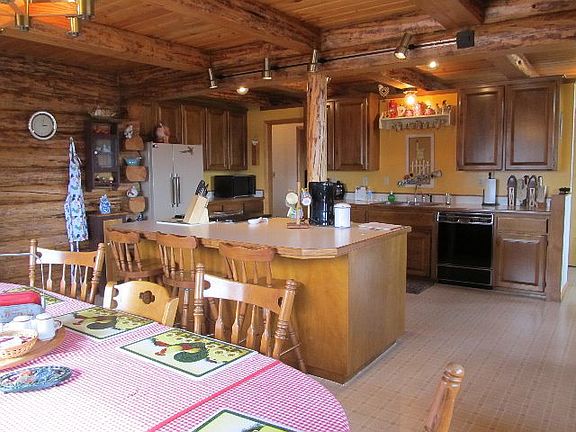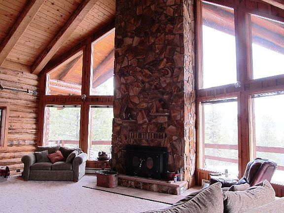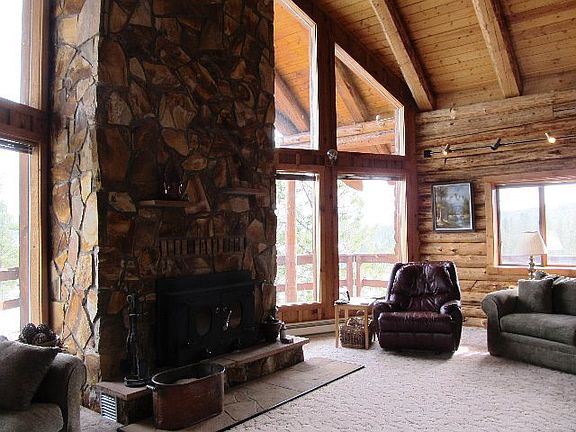 Classic, custom log home on .99 acre with spectacular view of mountains and valley. Master on main level has spa tub and separate shower. All other bedrooms upstairs adjacent to great room. Large kitchen with cooking island and open to spacious dining area. Living room has floor to ceiling, stone fireplace with views. All secondary bedrooms are spacious and have cathedral ceilings. Built-in music speaker system,lots of storage, and walk around deck to enjoy the views. Deck has been repaired and railings upgraded. Home is in good condition but is ready for you to come in and create your own masterpiece.