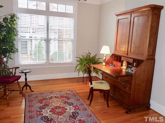 Spacious TownHome w/open floor plan lives like a detached home-no shared walls. Easy 1st floor living w/MBR, office/LR, DR, b'fast nook, laundry & huge kitchen w/beautiful granite, island, & bar, all on one level. 2nd floor offers 3 add'l BR's, bath & bonus room. 450 SqFt of add'l storage in walk up attic. Gorgeous landscaped back patio adds to the charm. 2 car gar w/heat/AC. Location walkable to Grocery, restaurants & shops. Short drive to RDU, Rex, d'town. This TH has it all-location & lots of space.