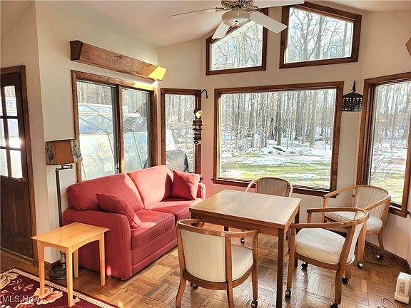 Here is your opportunity to own a little slice of heaven, sprinkled with character. Situated on 1.63 wooded acres in Orange Village, it is the original picket fence house you've been dreaming about. Features include an expansive family room and den combo, living room with wood burning fireplace, kitchen, sun room, 3 bedrooms and 2 baths. There are an abundance of windows allowing natural light to permeate throughout the home. You will be craving warmer temps to enjoy outdoor dining on your own wooden deck, and discovering your green thumb in the attached greenhouse. This home combines affordability with the option to make it your own in an ideal location offering stunning views, privacy and space to grow. Schedule your viewing today so this opportunity does not slip away! Property being sold AS IS. Seller will make no repairs.