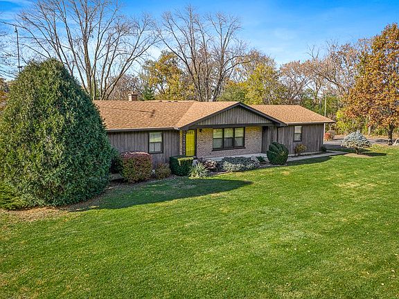 Fantastic Ranch home with a spectacular three season room. Light, bright and inviting with three sides of windows, vaulted ceilings and skylights. The view is pure tranquility. Separate, heated 26X30 workshop and additional shed on a lovely, wooded and private 1.6 acre homesite zoned A-1. You won't want to leave this beautiful spot! So perfect for running a small business from home. Generous room sizes with a comfortable layout. Meticulously maintained. Brand new roof, zoned heat (basement and upper level), convenient one level living with laundry on the main floor and a HUGE finished daylight basement with a stunning granite fireplace, historic bar from a tavern on the Fox River in Burton's Bridge (it closed in the 1970's) and a massive storage room. Basement walls are precast spancrete with cedar columns. Impressive. Yes, the pool table is included. A-1 zoning offers so much freedom to store your toys or have an animal or two. The handmade stained glass windows in the bathroom and workshop remain with the house. Any other hanging stained glass is not included. Estate requires an As-Is sale, but the sellers believe that the condition of the property is quite good.