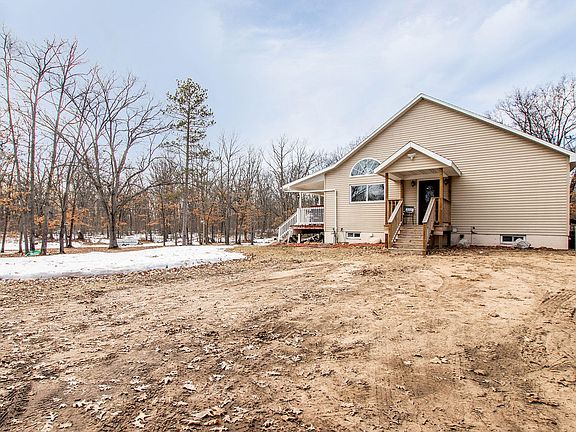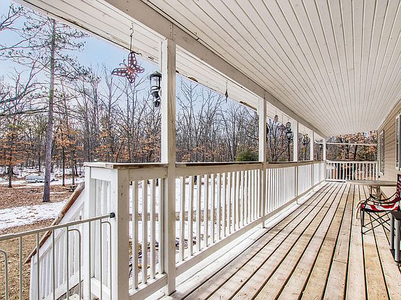 Woods, Water, Federal Land, Public Trails and More all Nearby - Lovely Ranch Style Home with 3 Bedrooms, 2 Baths Nestled on 8.75 Acres. Spacious open floor plan with cathedral ceilings in the kitchen and living room, creates an inviting space to entertain family and friends. Sliding Glass doors open to the Expansive covered deck that runs the length of the house where you can relax and enjoy watching the wildlife in this natural wooded setting. Along with 3 bedrooms on the main floor you will find the Laundry room with 1/2 bath and the full bath with custom tile shower and large jacuzzi tub. Walk out lower level offers addiitonal living space as family room/ weight room/ storage/Office and more. Dual heat system with Pellet stove. Listing agent is related to seller