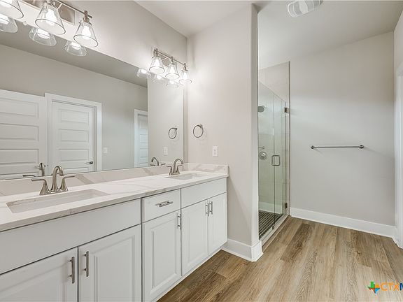 The Topaz offers a spacious 1,828 sq ft layout with 4 bedrooms and 2 bathrooms, offered in 2- and 3-car garage options. The open layout of the kitchen, dining area, and living room creates a welcoming and functional main living space to eat, entertain, and enjoy. The kitchen features an abundance of cabinetry, walk-in pantry, stunning quartz countertop & glistening backsplash. The primary suite is located on its own wing of the home and features a linen closet, a walk-in shower with natural light, double vanity, and a spacious walk-in closet. Outside, you’ll find a spacious covered back patio to enjoy the peace of the Texas Hill Country. The Topaz floor plan combines functionality with modern design for a comfortable and welcoming living space. As you tour the home, you’ll quickly notice the attention to detail that LTX Home Builders is known for. Every LTX home features luxury vinyl plank flooring, stunning quartz countertops and modern backsplash, stainless steel appliances, upgraded cabinets, upgraded kitchen sinks with garbage disposal, rounded corners on interior walls, plumbed for water softener, and ice maker ready. All bathrooms include quartz countertops and floor-to-ceiling shower tile for added elegance and durability. Energy- efficient double-paned vinyl windows, programmable thermostat, and an abundance of energy efficiency features. We believe in quality that starts with framing, that’s why in our homes we use OSB wood on all our exterior walls. From the open-concept living areas to the intimate bedroom retreats, every aspect of this home is crafted with you in mind. And with a 1-2-10 comprehensive warranty, you can move in with peace of mind, knowing we stand by our commitments.
