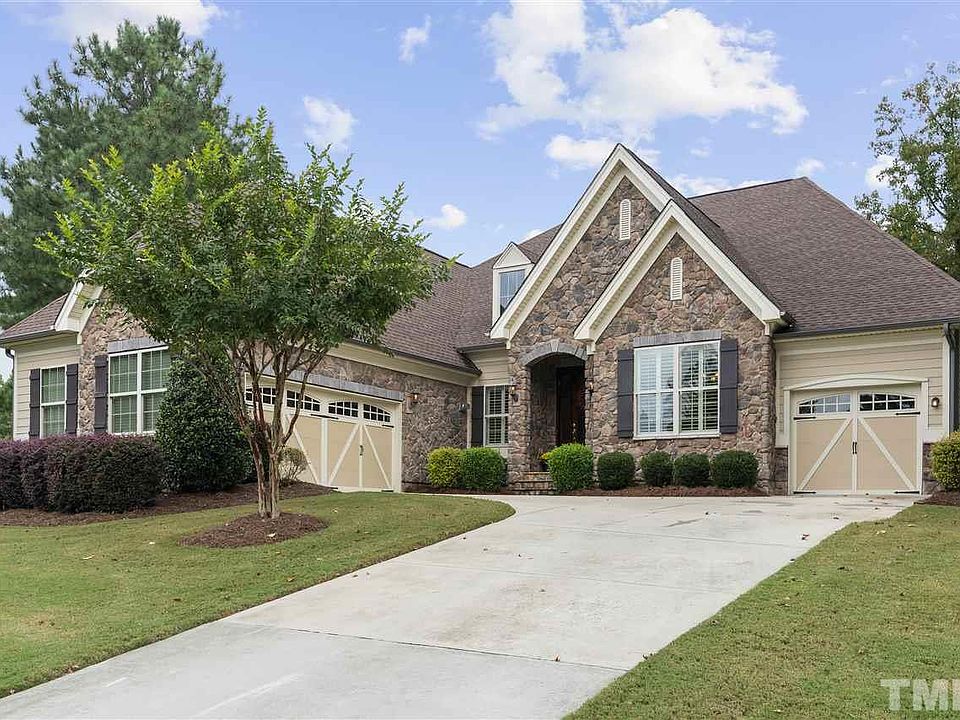 Pristine RANCH plan with 4 bedrooms/3.5 baths! Gorgeous stone front & 3 car split garage. Wide plank hardwoods through main areas. Chefs kitchen with large center island, gas cooktop, SS appliances overlooks HUGE FR boasting stone fireplace. Large owners suite with WIC and lux bath. Large secondary bedrooms all with access to ensuite baths. Tall ceilings, extensive millwork, tons of storage, three season porch and a large lot make this home special. NO City taxes but minutes to Crossroads and Cary Parkway