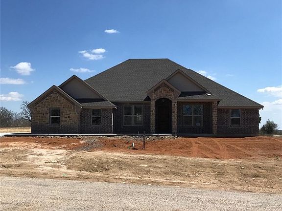 Custom features in this showcase home with a nice covered front and back porch. 4 bedroom, 3 bath, formal dining, study, and breakfast area. Upgraded granite, cabinets, flooring, lighting, plumbing fixtures, crown, and too many other upgrades to list. Full sprinkler and sod. Impressive stone and brick exterior. Wonderful location in gated DeCordova Ranch minutes from Lake Granbury. Ready early April.