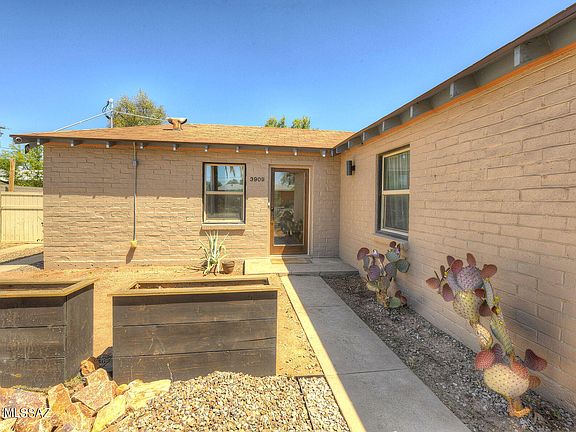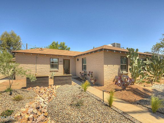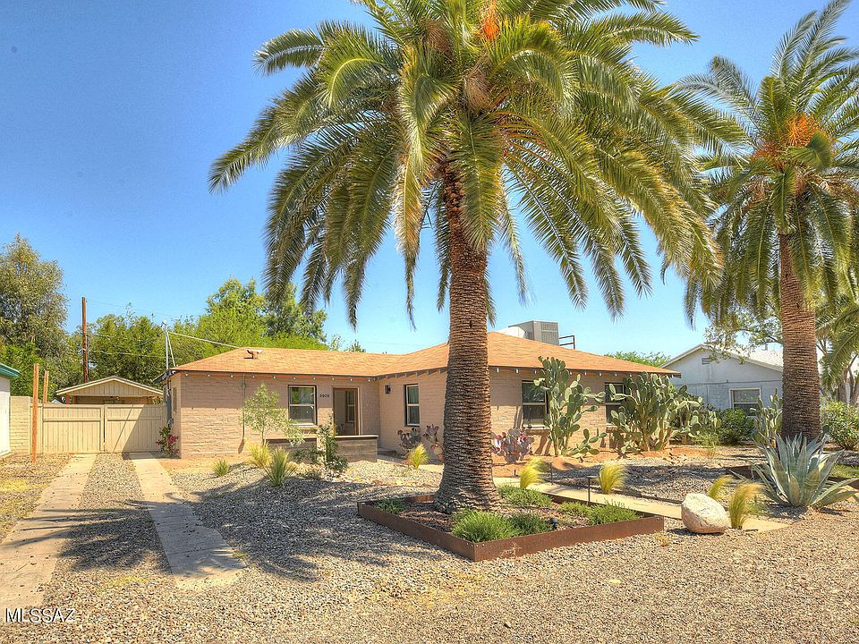 Mid-century modern charm w/contemporary touches makes this Garden District Bungalow on .23 acres a great find. Extremely private mature XL back yard creates your own oasis. Recently updated with newer stainless appliances including Frigidaire gas range, dishwasher, refrigerator and space saving wall mount kitchen faucet adds to the charm of the bright, open kitchen. Off the kitchen the pantry area features stacked 2022 Electrolux washer/ dryer saving space with adding to convenience. Light streams into living area through dual pane windows as well as glass door featuring a digital deadbolt with a SimpliSafe alarm console. Updated electrical box & electric car charger. 3 bedrooms have refinished doors, contemporary hardware & new ceramic tile throughout (no carpet). See the MORE Tab Bathroom features lime plastered walls with ceramic tile and a walk-in penny tile shower with fixed glass partition. Large lot allows this home to sit well back from the street and grants plenty of room to enjoy the mature landscape trees and shade in the backyard. Storage room & 1-car carport. Home backs up to Yume Japanese Garden. Just two blocks from the Tucson Botanical Gardens in the heart of Tucson. Close ot everything!! No HOA! Welcome Home