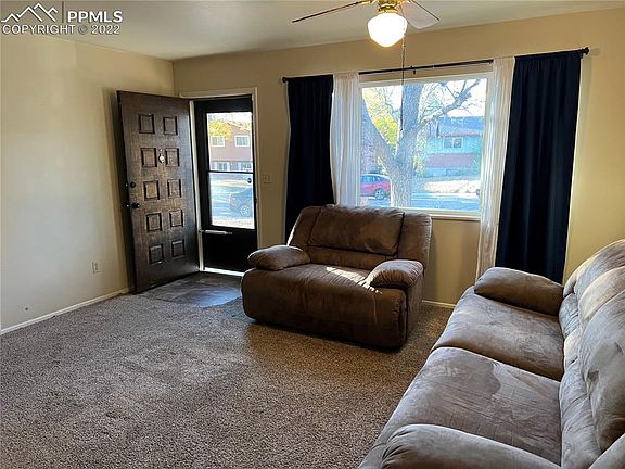 Clean one-level Rancher with newer furnace and central air. Large lot and fenced back yard with lots of potential and views of the Pikes Peak. Large bedrooms, Spacious kitchen. Newer vinyl windows. Great neighborhood located close to hiking trails, shopping, schools and more. Extra parking on side of house with gate that leads to the back yard. This amazing house has lots of potential. Move in ready.