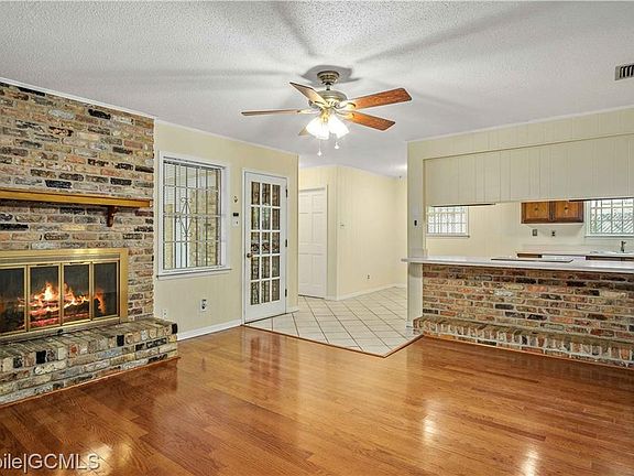 This well constructed brick home with attached carport is spacious and ready for a new family. There are three generous sized bedrooms and two bathrooms. The large kitchen has plenty of cabinets, a breakfast bar, a generous sized eating area and all appliances remain with home. The family room has a cozy wood burning fireplace for those cool southern nights. There is also a separate living room as well as a dining room. The entire home has Wood and ceramic floors with the exception of two bedrooms, which have carpet. There is a 600' double garage in the back as well as a 6 x 20 storage room. Just minutes away from I-65, close to schools, church's, shopping and restaurants.The roof was replaced five years ago, per seller.