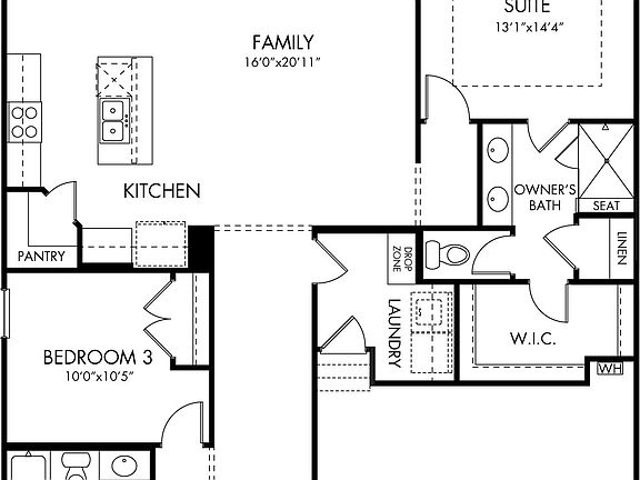 Prepare dinner in the open-concept kitchen and family room. The owner's suite offers dual sinks and walk-in closet. Wheat oak flooring, linen paint cabinets with peppered ash granite countertops, sand carpet in our Essential package.