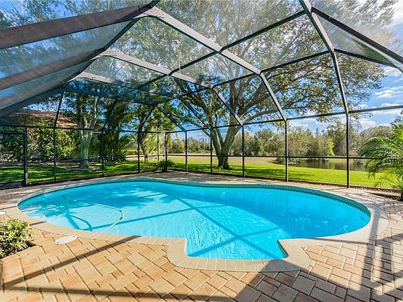 Stunning lot, gorgeous pool patio with a fantastic pond view and located in the highly sought after neighborhood of Lithia Ridge! This sprawling home boasts over 2800 heated sqft with 5 bedrooms, 3.5 bathrooms and impressive pride of ownership from top to bottom! The backyard is an oasis of relaxation including a massive pool with a pavered deck, screened enclosure, electronic rolling hurricane shutters and a STUNNING VIEW of the over-sized backyard, pond and conservation area. And to top it off there are no backyard neighbors! The master bathroom en suite features dual sinks, a garden tub, and a separate standing shower. The master bedroom is spacious and has direct access to the beautiful pool area and lanai.There is an open layout with a split bedroom floor plan, formal dining room, formal living room and a fireplace in the family room. Lithia Ridge has A rated schools, a large playground and park area, and is conveniently located near an array of dining and shopping choices.