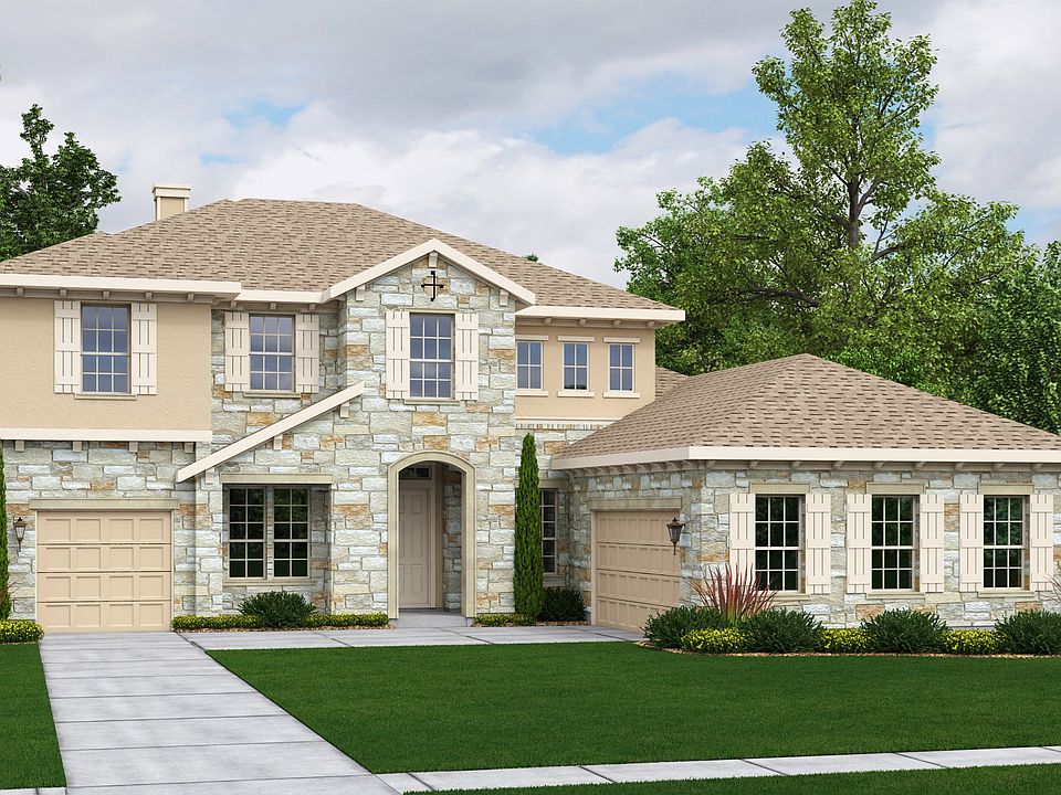 Experience the convergence of refined craftsmanship, beautiful design and incredible luxury in the Estancia, the finest example of a modern estate family home. Featuring five bedrooms and four-and-a-half baths on two stories, the Estancia combines stunning architecture with upscale materials such as granite, oak and marble to create a flowing and open floor plan with incredible natural light, large rooms, and unique design features such as the soaring two-story entry rotunda and arched estate hall. Providing an unsurpassed amount of usable living space, the Estancia includes a dramatic curved stairway, a quiet study, dining room, double-height family room with 42" tiled fireplace, gourmet kitchen with prep island, breakfast nook, breezy covered patio, and upstairs card and game rooms purpose built for memorable holiday parties. The first-floor master suite is inspired by luxury resorts and includes a peaceful bedroom with vaulted ceiling, bay window, and a master bath with dual vanities, two spacious walk-in closets, deep soaking tub, and a separate tiled walk-in shower. Additional standard features include a utility room, walk-in closets at each of the secondary bedrooms, walk-in pantry, and both single-car and double-car garages. Extensive options include built-in desk and bookcases in the study, sliding glass doors at the breakfast nook and second bedroom, a desk at the card room, a handy dog wash in the utility room, and even a gorgeous and relaxing covered deck.