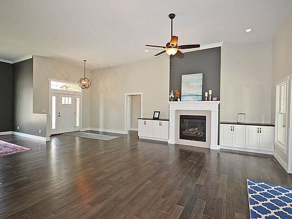 Custom built by Ryan Homes, beautiful 4BR/3.5BA ranch w 3 car garage, fin walkout LL tucked on flat tree lined lot backs up to green space w perfect open floorplan for family or empty nester! All the most current trends & finishes, incl timeless white cabinetry, subway tile backsplash, rich scraped hickory flooring, 2 panel doors, 12 ft ceil, amazing master attached to laundry w walk-in tile shower. Drop zone w cubbies, 2 covered patios (off kitchen & LL) ready to screen. Pleasant Plains Schools