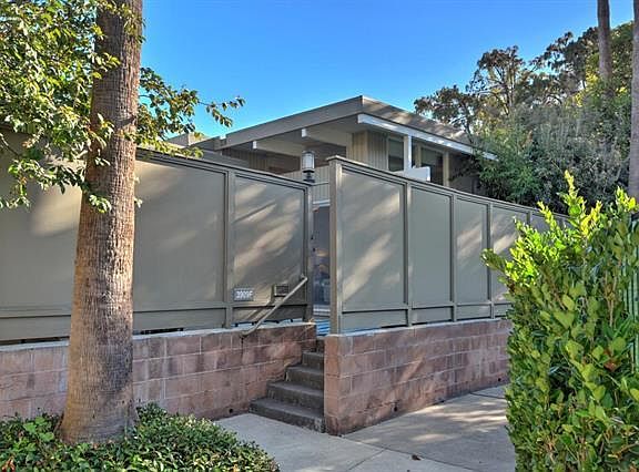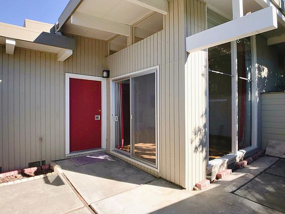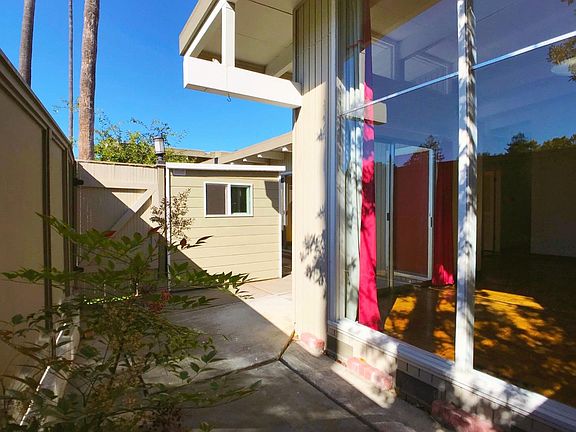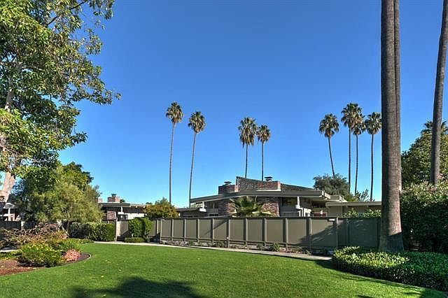 1) 2Br/2Ba Townhouse with vaulted ceiling and open beams in excellent Palo Alto school district. 2) Nice home next to green lawn and surrounded with palm trees. 3) Bright and open living and dining combo area with hardwood floor & fireplace. 4) In unit spacious laundry room with washer, dryer, and shelves 5) Fenced patio area with a children play house. 6) Master suite with remodeled bath and closet area, plus access to private patio. 7) Private attached covered parking and open parking area 8) Sought-after Las Casitas gated community with beautiful yards, trees and a pool. 9) Easy commute to many high tech companies in Palo Alto, and Mountain View. 10) Walking distance to banks, shops, restaurants, and Community Center