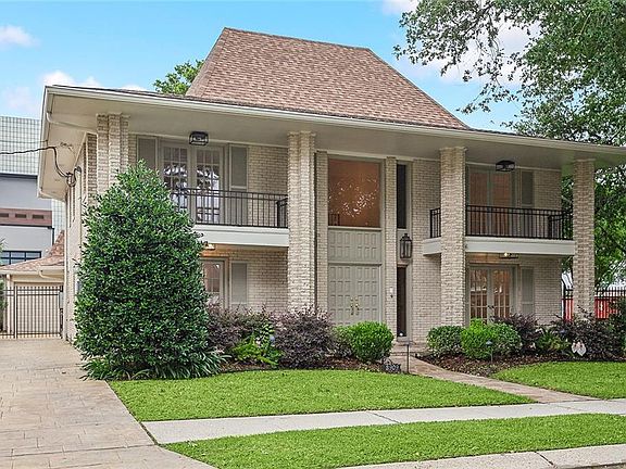 Gorgeous home in prime Metairie location! Located on a tree-lined street, just one house from the levee. Step into the grand foyer with 18’ ceilings! 5 bedrooms, 3 full baths plus a large formal dining room, which could also serve as a playroom or office. This home was fully renovated by Schmidt Homes including: fresh paint inside and out, all new flooring, wood stairs and iron railings, designer lighting, brand new kitchen with stone counters, stainless steel appliances and breakfast nook with Bay window; spacious primary suite including multiple walk-in closets, fully renovated ensuite bathroom, and French doors leading to balcony; fully renovated downstairs bathroom; brand new fortified roof with certificate/warranty, which saves on insurance; new tankless hot water heater; updated windows; new sliding doors on extra large sunroom, which leads to the beautiful backyard/patio. Great for entertaining! Detached two car garage with new electric door plus a large finished air conditioned bonus room- great for a gym, studio, or home office. Huge living room with built-ins and a wood fireplace. Security system installed and pre wired for security cameras. X flood zone!