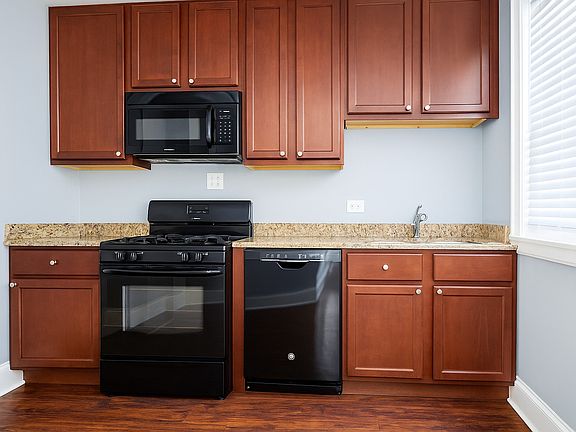 Experience comfort and convenience in this charming 2-bedroom apartment located in the heart of Portage Park. Bright natural light fills every room through oversized windows, highlighting gleaming hardwood floors and fresh modern finishes. The updated kitchen features rich cherry cabinetry, granite counters, and black appliances, while the fully refreshed bath adds a touch of elegance with clean, contemporary style. Enjoy a perfect blend of vintage character and modern updates-complete with classic trim, tall ceilings, and a cozy radiator accent. Ideally located near public transit, the Metra, the Blue Line, and quick access to I-90, this home keeps you connected while offering a peaceful neighborhood setting close to shopping, parks, and restaurants. Come and see it for yourself.