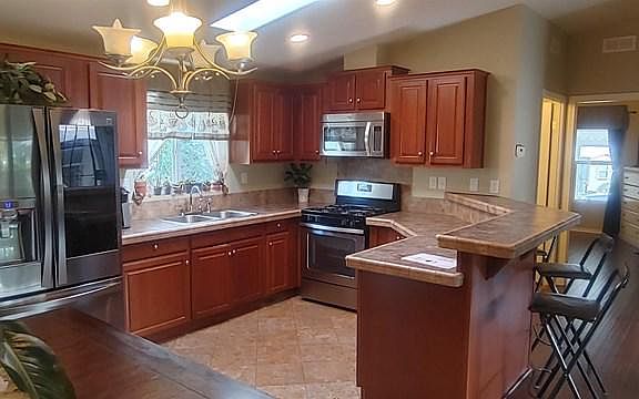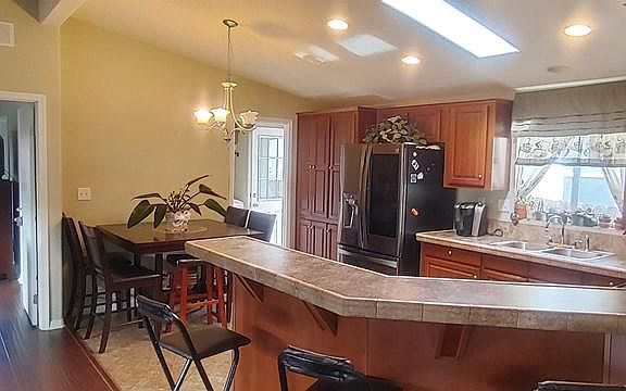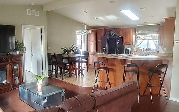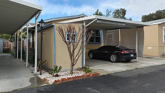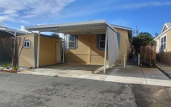 Nice newer 3 bd/2 ba model. Open floor plan with beautiful kitchen! Kitchen features bright and sunny room with breakfast bar, eat in kitchen, stainless steel appliances and lots of storage. Vaulted ceilings and laminate wood flooring throughout. Large master with ensuite bath with double vanity. Laundry room with door leading outside. Beautiful outdoor patio, perfect for entertaining or enjoying a BBQ. Large shed for extra storage. 2 car covered carport. This newer unit shows very well, and has been nicely maintained.