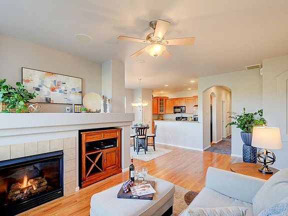 Lovely move in ready condo. This wonderful open floor plan condo, has new carpeting and interior paint. hardwood floors, a gas fireplace in the family/living room, and 2 balconies. The Oversized 2 car garage, has ample storage space. Kitchen features: black appliances (of which all are included) pantry & Corian solid surface countertops. Master bedroom with en-suite, oval soaking tub & private balcony to enjoy your morning coffee. You get a laundry room and the washer and dryer are included as well. HOA includes pool, parks & the functioning Observatory. Don't worry about lawn care, snow shoveling, as they take care of that too. Trash/Water paid by HOA. Close to 54-acre Twin Silos Park, shopping, I-25! One year Home Warranty Included Come see this well kept home, and make it your own.