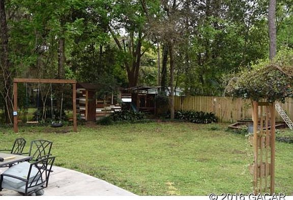 **Under Contract - Backup offers accepted** Charming 4 bedroom 2 bathroom concrete block home centrally located in a quaint treelined neighborhood. Newer insulated windows, HVAC replaced in 2009, roof 2002, guest and master bathroom remodeled in 2010, and stone paved patio 2012. This home is move in ready and offers an open and spacious kitchen with lots of countertops, a formal dining room, eat in kitchen, breakfast bar, walk­in closets, wood floors throughout, and more! On the bus routes to UF, but so close that you could ride your bike or walk to UF or numerous restaurants, shops, and entertainment. The neighborhood also offers scenic walking trails throughout. Chicken coop and green house in back yard as well as a covered boat parking a