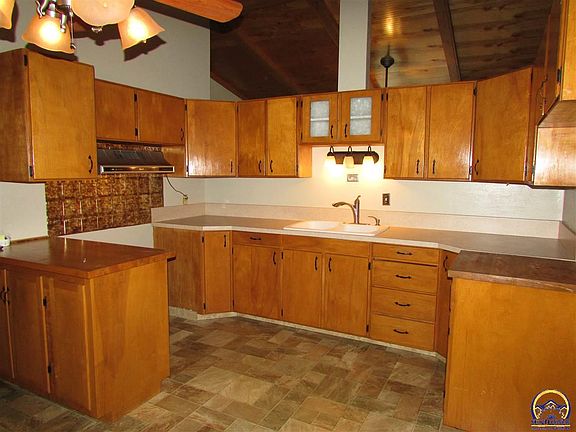 This is a keeper! Great accessible home. Wood cathedral ceiling over living and kitchen for a dramatic look. Interesting kitchen, too, with nicely-sized eating area. Oversized single garage with carport attached, also. The backyard was the owner's delight - patio, deck, waterscape, & lots of beautiful plantings surrounded by a super privacy fence!