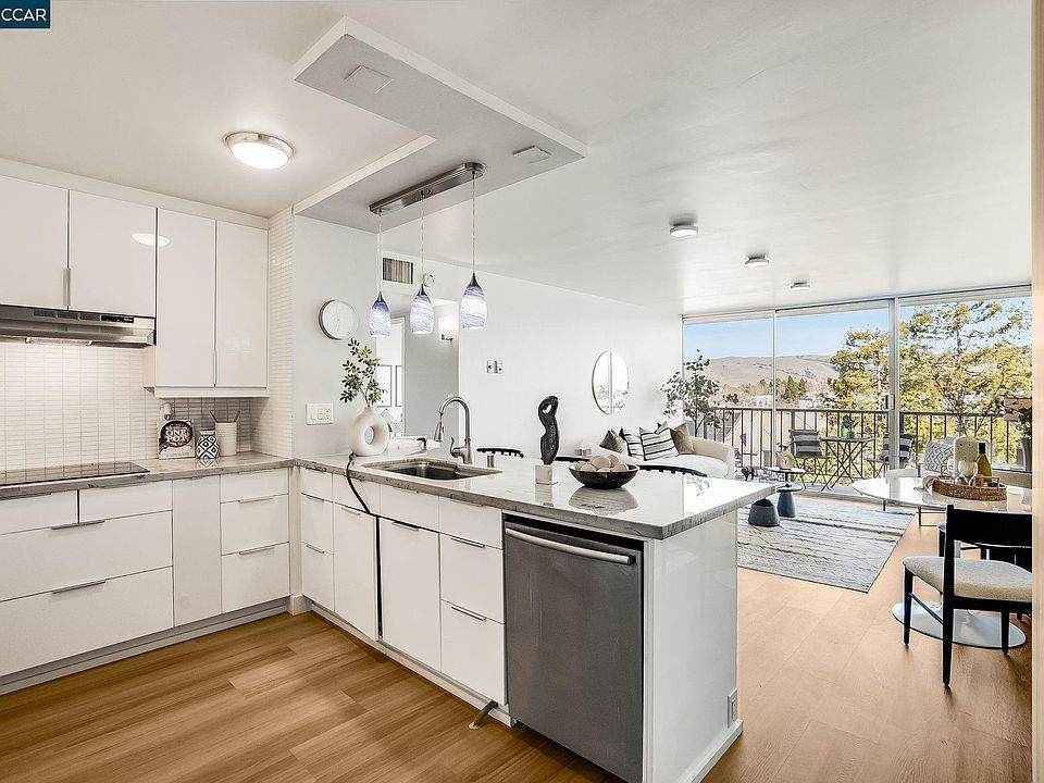 Panoramic Views & Modern Elegance! Bask in stunning panoramic views of Fremont’s rolling hills from spacious balcony. This elegant yet affordable condo offers a bright, modern open kitchen, perfect for crafting your favorite meals. Featuring stainless steel appliances, a dishwasher, microwave, and under-cabinet lighting, the kitchen is a true centerpiece of contemporary design. This fully remodeled, open-concept unit boasts luxurious upgrades throughout, including marble countertops, custom cabinets in the kitchen and bathroom, pendant lighting, and gleaming premium waterproof luxury Vinyl floors. Floor-to-ceiling windows flood the space with natural light, while modern finishes elevate every room. The serene master bedroom features a sliding glass door to the balcony, a walk-in closet, and a Swedish-designed mirrored wardrobe, offering ample storage. An additional bedroom closet ensures even more space. The newly updated bathroom, complete with a marble countertop and soaking tub, is your personal retreat after a long day. The complex enhances your lifestyle with amenities such as assigned covered parking, a swimming pool for relaxation or exercise, clubhouse, tennis courts, and a rooftop laundry room. Conveniently located near shopping, dining, BART, Central Park, must-see!!