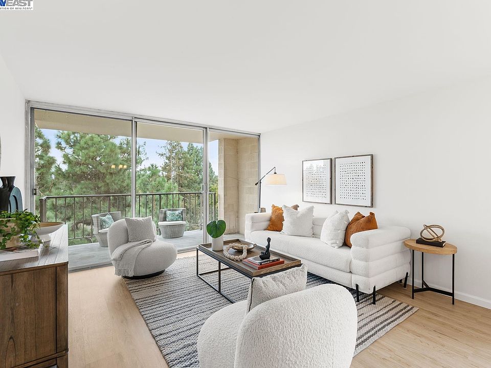 Welcome to this beautiful 2 bedroom & 2 bathroom condo, located at Parkway Towers in Fremont. This condo is a corner unit with views of the hills and trees, it offers new waterproof flooring throughout, new light fixtures in the hall and dining, and new interior paint. Remodeled kitchen with new white cabinets some cabinets have shaker style doors, new quartz countertop and backsplash, stainless steel appliances, new sink, and faucet. Both bathrooms have new sinks and faucets, new quartz countertops, new cabinets, and new light fixtures. Both bedrooms have closets and balconies overlooking amazing views. A spacious living room with a private balcony and a dining area. HOA is $408 monthly, includes hot water, trash removal, pool tennis courts, and exterior maintenance. There is a lobby area, elevator, unit has a storage area, close to shops and restaurants.