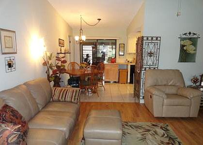 It's like having your own pool right across the street. Desirable, well maintained community with low monthly fees.This is a lovely updated villa and the seller believes in continually upgrading the property. You will notice just from the beautiful landscaping with concrete curbing & tiled front porch. Kitchen has newly painted cabinets, new counter tops, tray ceiling, stainless refrigerator in 2012, & all other appliances in 2011. Washer & dryer new in 2010. The entire home has laminate flooring, except in kitchen & baths. Freshly painted walls throughout in soft colors Florida Room under air w/ bamboo shutters, plus covered rear porch. New Train A/C in 2010. Gutters & drains in 2009 and new septic & drainfield in 2007. Extra insulation in attic. The home has been impeccably maintained inside and out .BEING SOLD PARTIALLY FURNISHED.