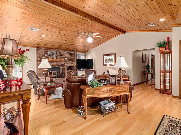 Custom built, two owner home located conveniently in Jonesboro sits on a large lot with mature trees and landscaping. Originally built for the builder, this home has quality finishes throughout plus some hidden ones like 2x6 insulated walls. The oversized living room features vaulted ceilings, wooden beams and a brick wood burning fireplace. The eat-in kitchen has recently been updated with granite countertops, subway tile backsplash, LVP flooring and stainless steel appliances as well as freshly stained custom cabinets with rollout shelves. The main level also features a formal dining room great for entertaining. The primary suite features a custom tile shower, dressing area and an oversized walk-in closet. Off the primary suite is the heated and cooled sunroom perfect for relaxing but would also make a great office. Two large guest bedrooms, one full bathroom with updated vanity and an additional half bath with laundry can be found on the main level. Throughout the main areas of the home is gorgeous hardwood floors. Downstairs you'll find a partial basement that is finished out that is currently set up as a bonus room with pool table.